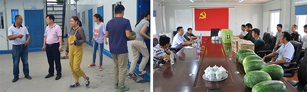 進(jìn)入盛夏,高溫炙烤,暑氣逼人,尤其是入伏以來,氣溫更是居高不下,為確保施工現(xiàn)場(chǎng)安全生產(chǎn),保障一線管理人員及工人的人身安全和身體健康,7月13日至23日,公司領(lǐng)導(dǎo)班子全體成員組成八個(gè)慰問組奔赴濟(jì)南、青島、濰坊、德州、濟(jì)寧、鄭州等多個(gè)地市的22個(gè)項(xiàng)目部,開展了以“情系一線 夏送清涼”為主題的慰問活動(dòng)。