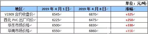 沉寂3個(gè)月的PVC,踏入4月后表現(xiàn)可謂突飛猛進(jìn)。尤其在PVC期貨實(shí)現(xiàn)移倉(cāng)換月后,漲價(jià)動(dòng)能得到充分激發(fā),大舉突破震蕩狀態(tài),從4月1日至4月8日,大商所V1909合約收盤價(jià)漲幅近5.0%。而PVC生產(chǎn)廠家在庫(kù)存低位的情況下看漲情緒較強(qiáng),助推漲價(jià)潮在短時(shí)間內(nèi)愈演愈烈。