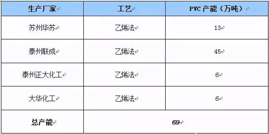 表3 江蘇省PVC產(chǎn)能統(tǒng)計(jì)
