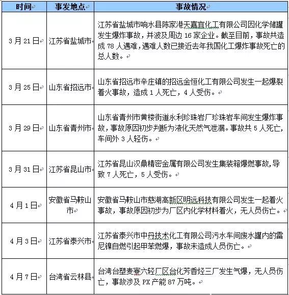 表2近期化工安全事故一覽